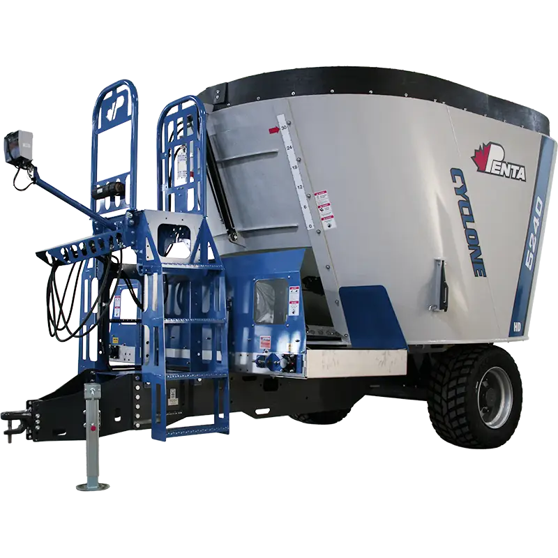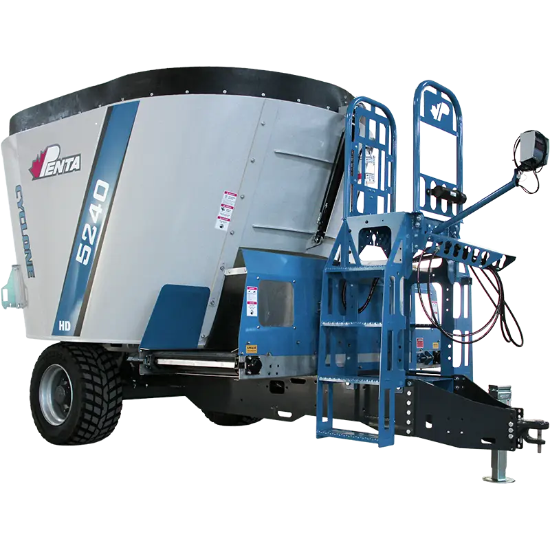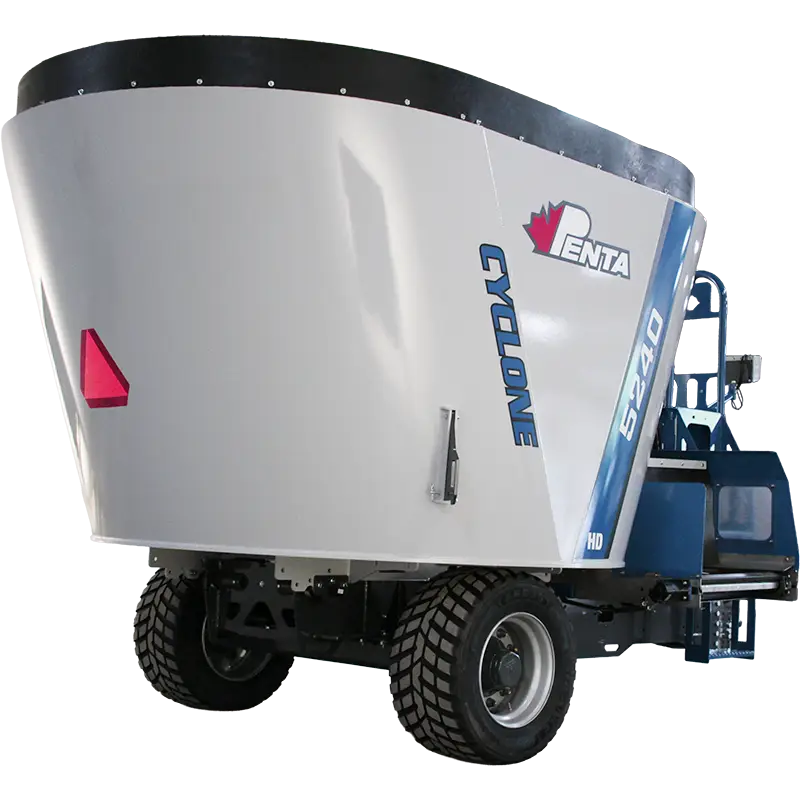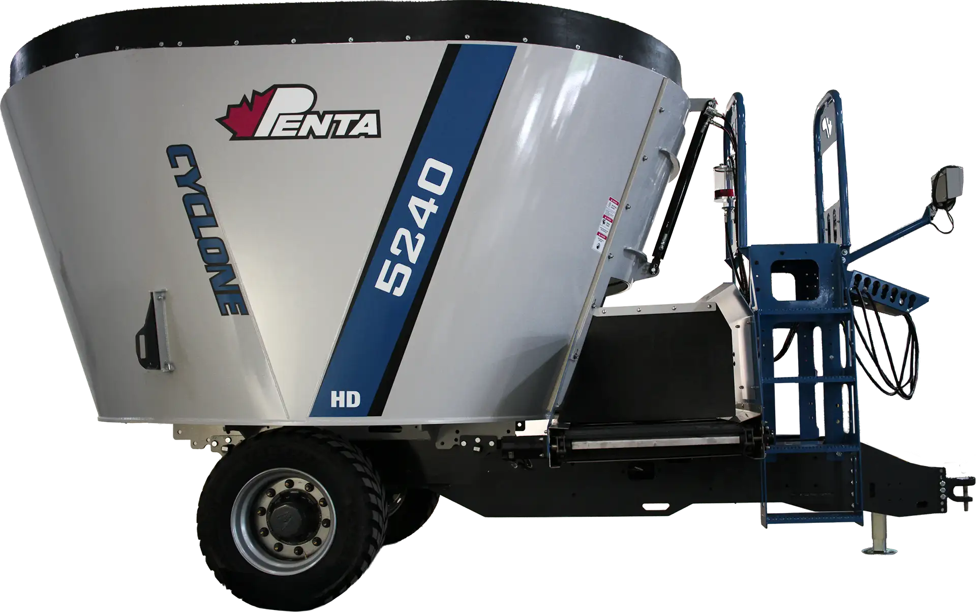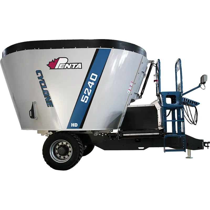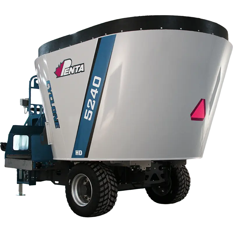 The Penta 5240 is a robust single-auger trailer mixer built for high-capacity feeding. Boosting a 523 cu ft tub, rugged construction, and the patented Cyclone Auger for fast, even mixes on demanding farms.